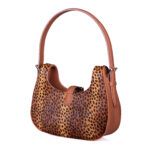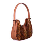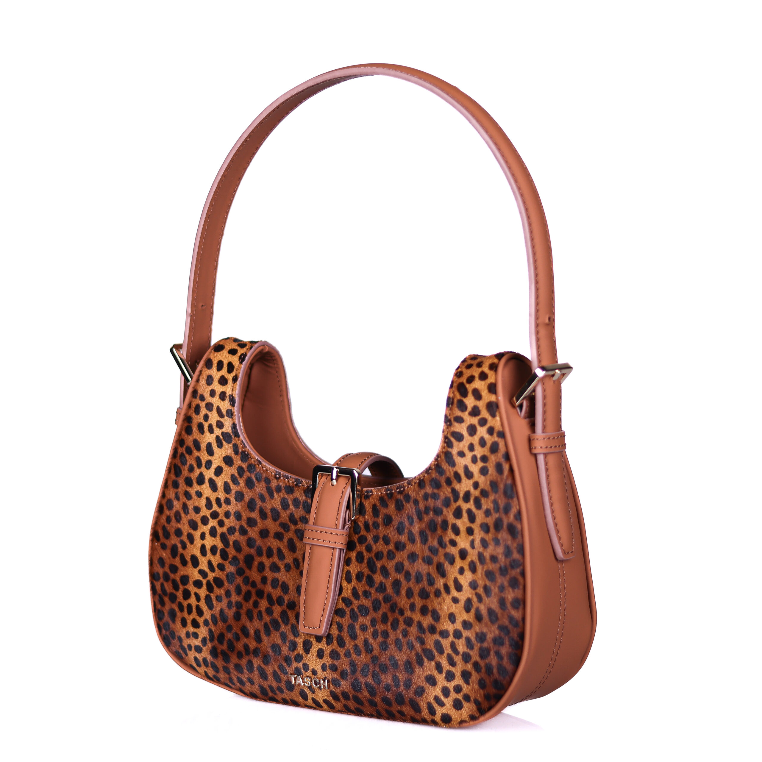 TASCH Timeless koleksiyonuna ait camel deri detaylı leopar omuz çantası, sıcak tonları ve zamansız formuyla güçlü ama dengeli bir stil sunar.