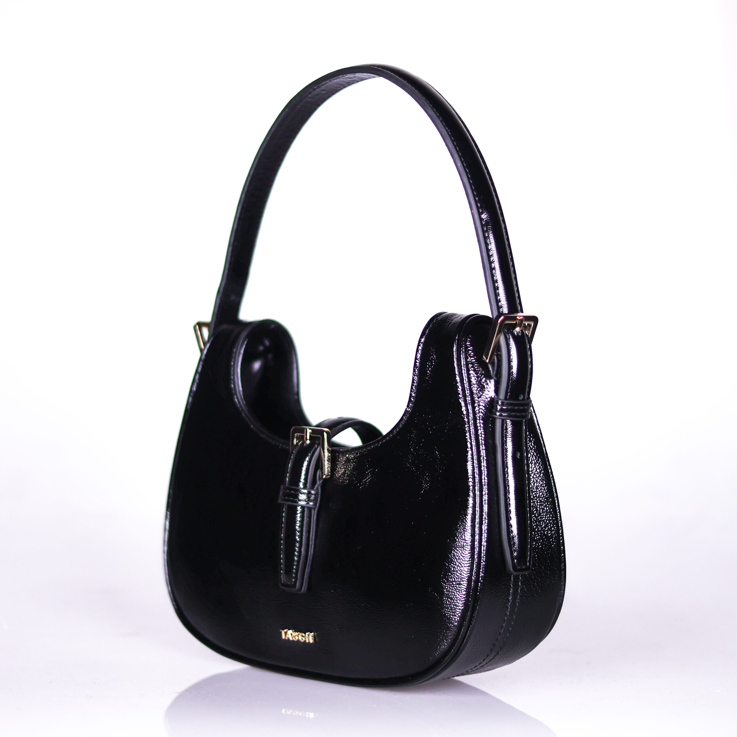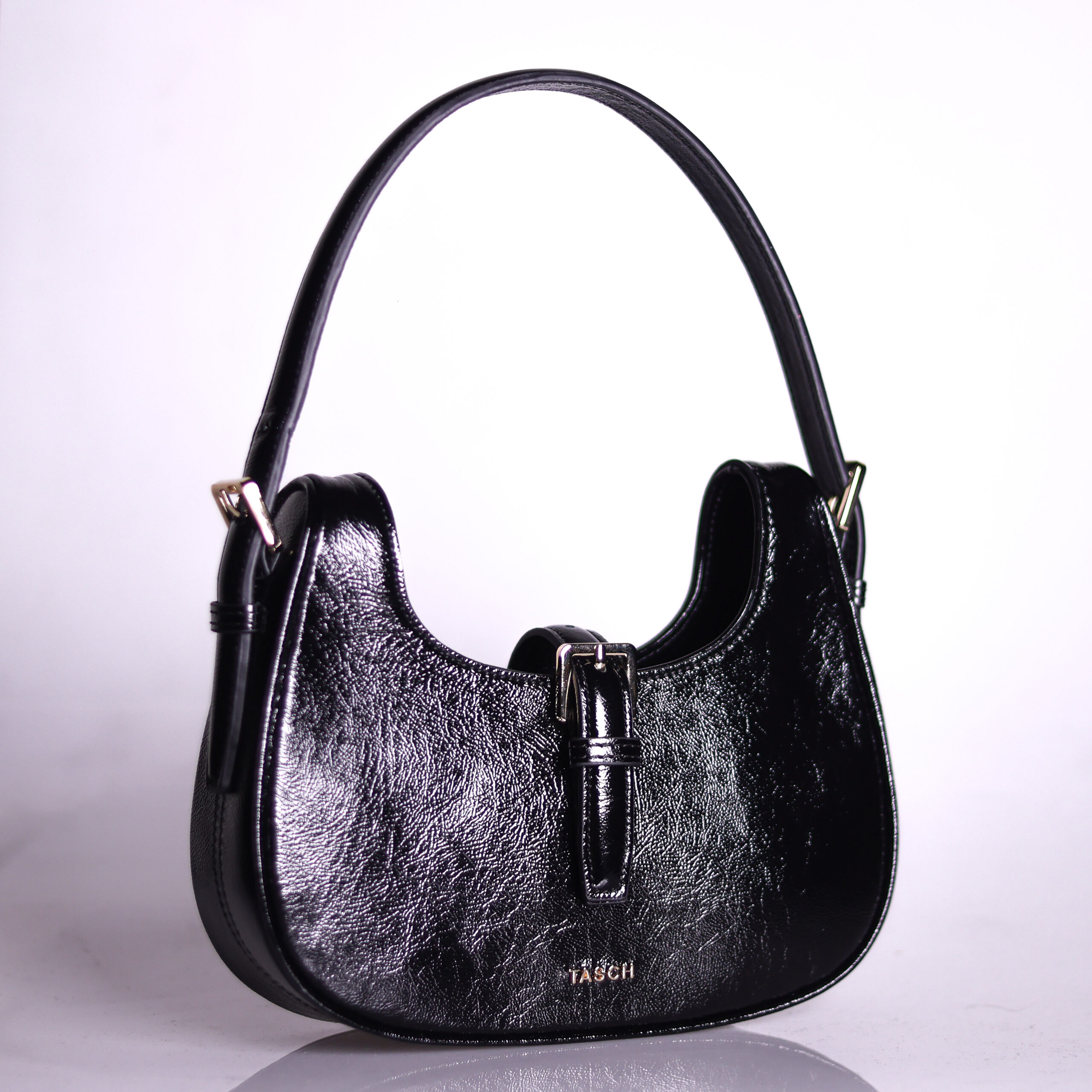 TASCH Timeless koleksiyonundan siyah omuz çantası; geçici trendlerden bağımsız, uzun yıllar stilinize eşlik edecek şekilde tasarlandı. Parlak ve yumuşak dokulu deri görünümü ile sade formu, çantaya güçlü ama abartısız bir karakter kazandırır.